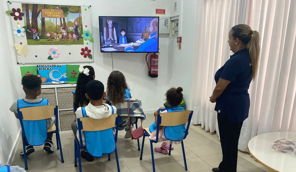 As crianças acompanharam, pelo UniverVideo, este testemunho inspirador, de como é bom viver em comunhão com Deus e do poder que tem a oração.